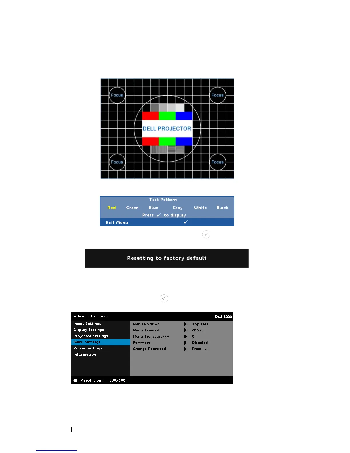 ACTORY RESET—Select Confirm and press to reset all settings to