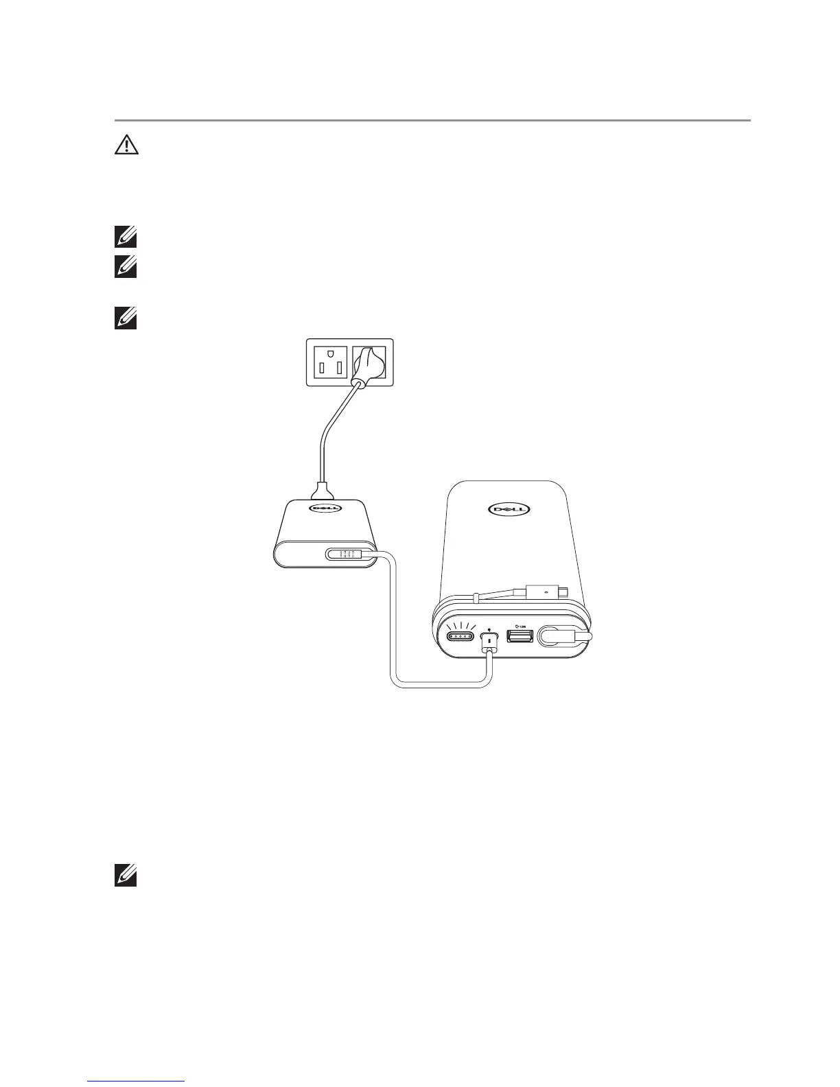 1 Connect one end of the Dell power adapter to the power input port on the power bank.