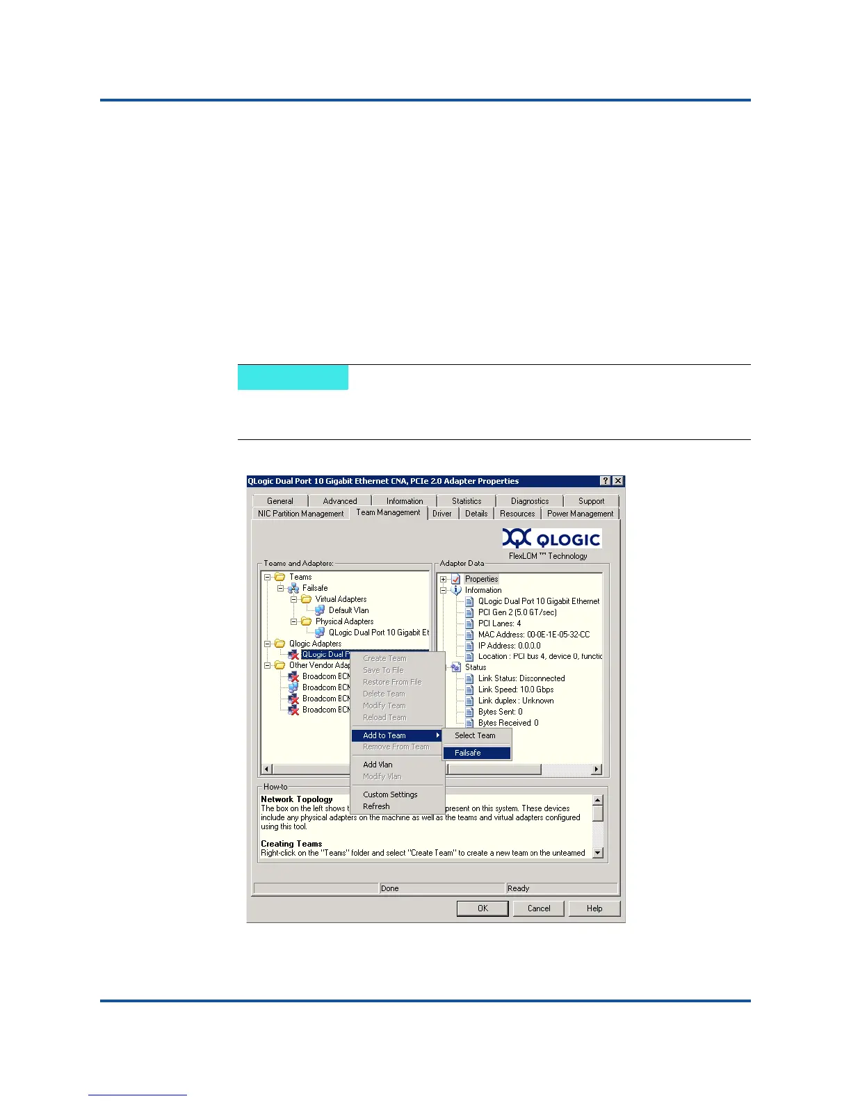 1. On the Team Management property page, right-click the unteamed adapter