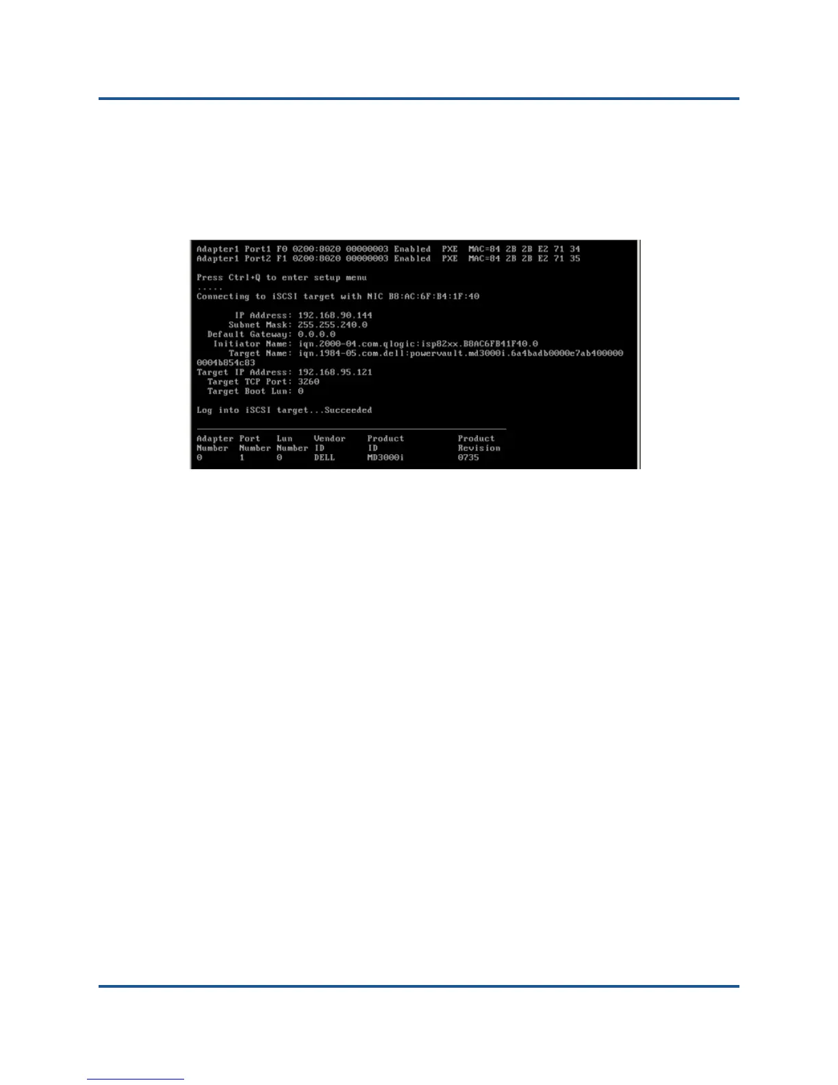6. The Option Rom shows the iSCSI target login information, as shown in