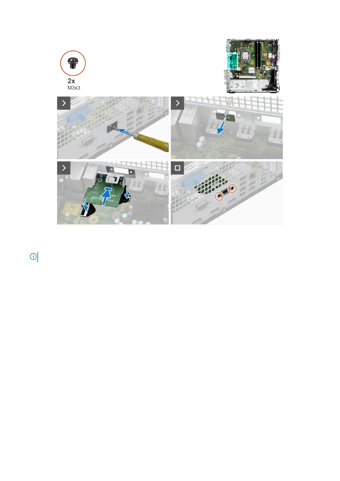 4. Ricollocare le due viti (M3x3) per fissare il modulo Type-C allo chassis.