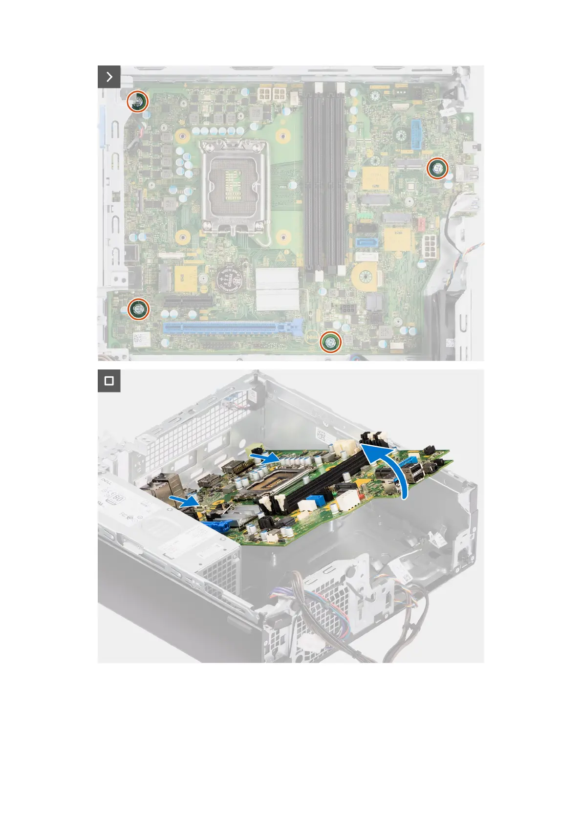 4. Remove the four (#6-32) screws that secure the system board to the chassis.