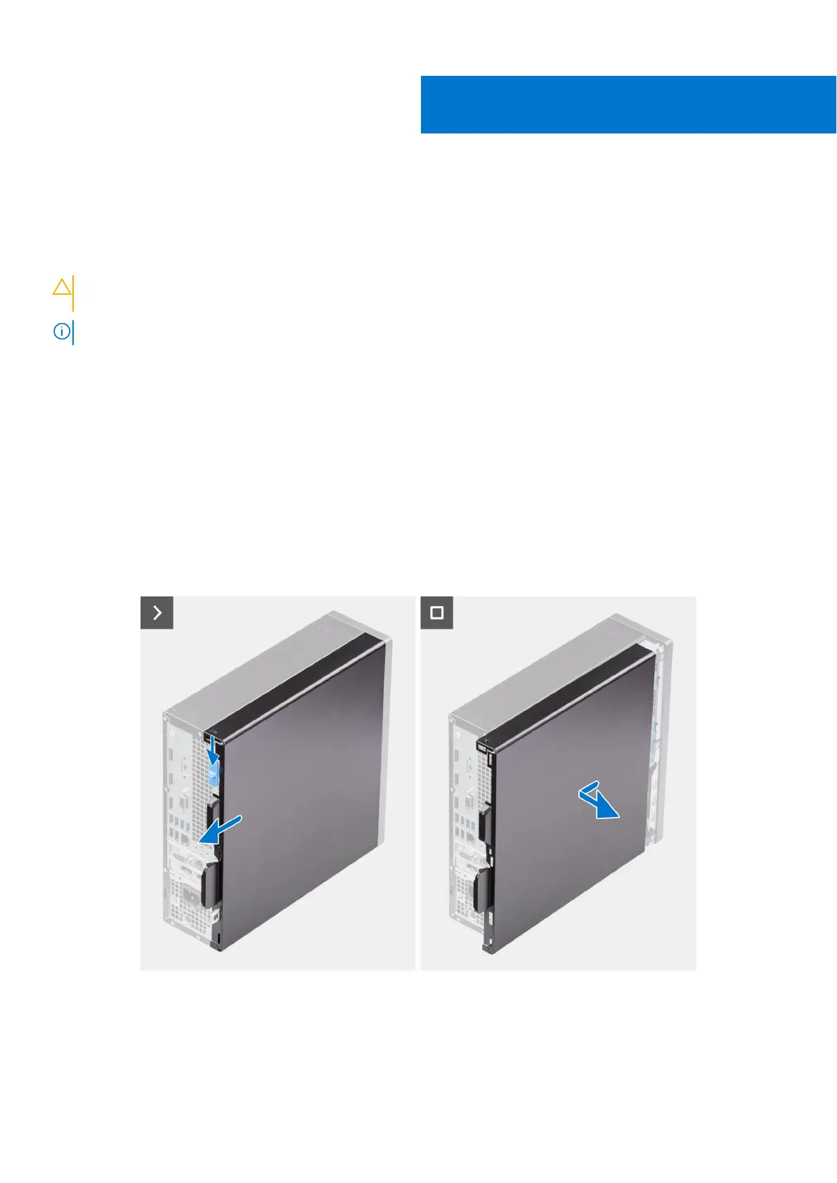 1. Far scorrere il fermo di rilascio fino a sentire un clic e far scorrere il coperchio laterale verso la parte posteriore del computer.