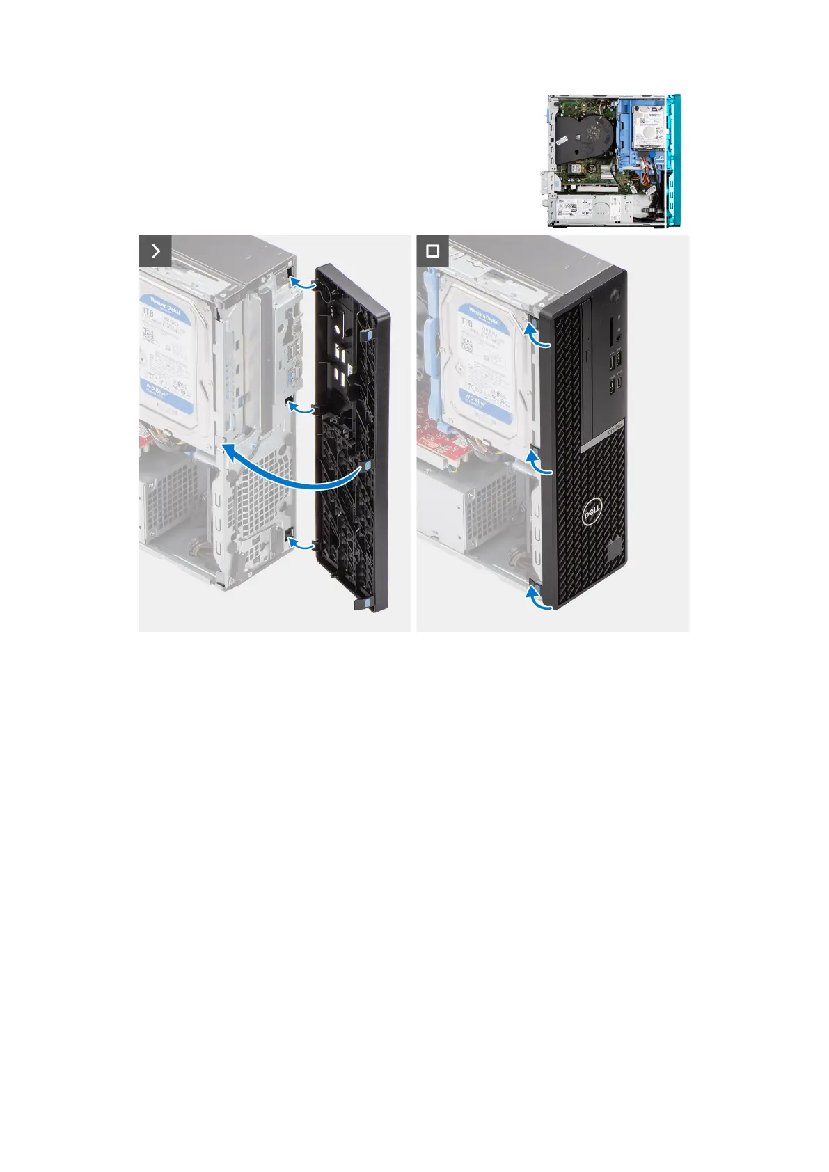 2. Ruotare il pannello anteriore verso lo chassis finché non scatta in posizione.