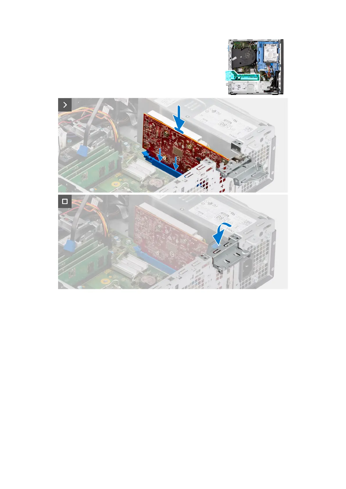 3. Ruotare la staffa di supporto della scheda grafica che collega la scheda grafica.