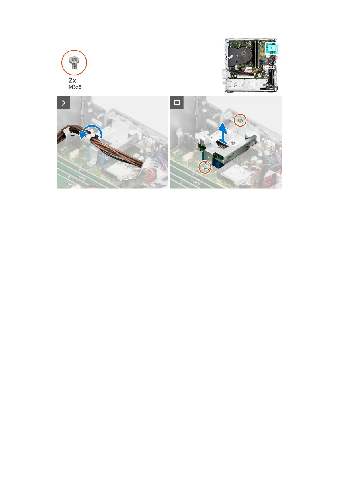 2. Rimuovere le due viti (M3x5) che fissano la staffa del lettore di schede multimediali alla scheda di sistema e allo chassis.