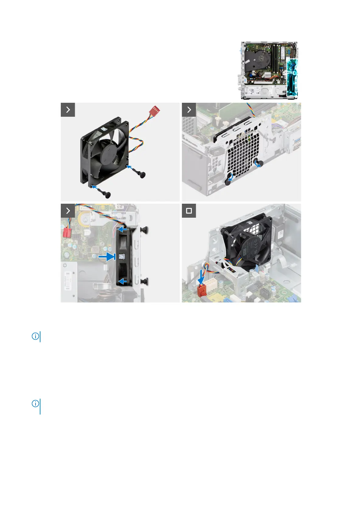 6. Spingere la ventola di sistema verso lo chassis finché non scatta in posizione.