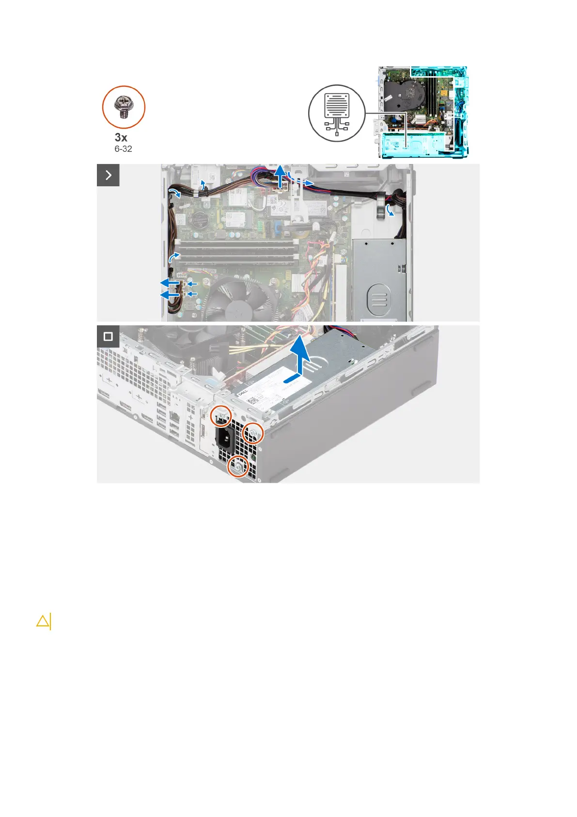The following image indicates the location of the power-supply unit and provides a visual representation of the installation