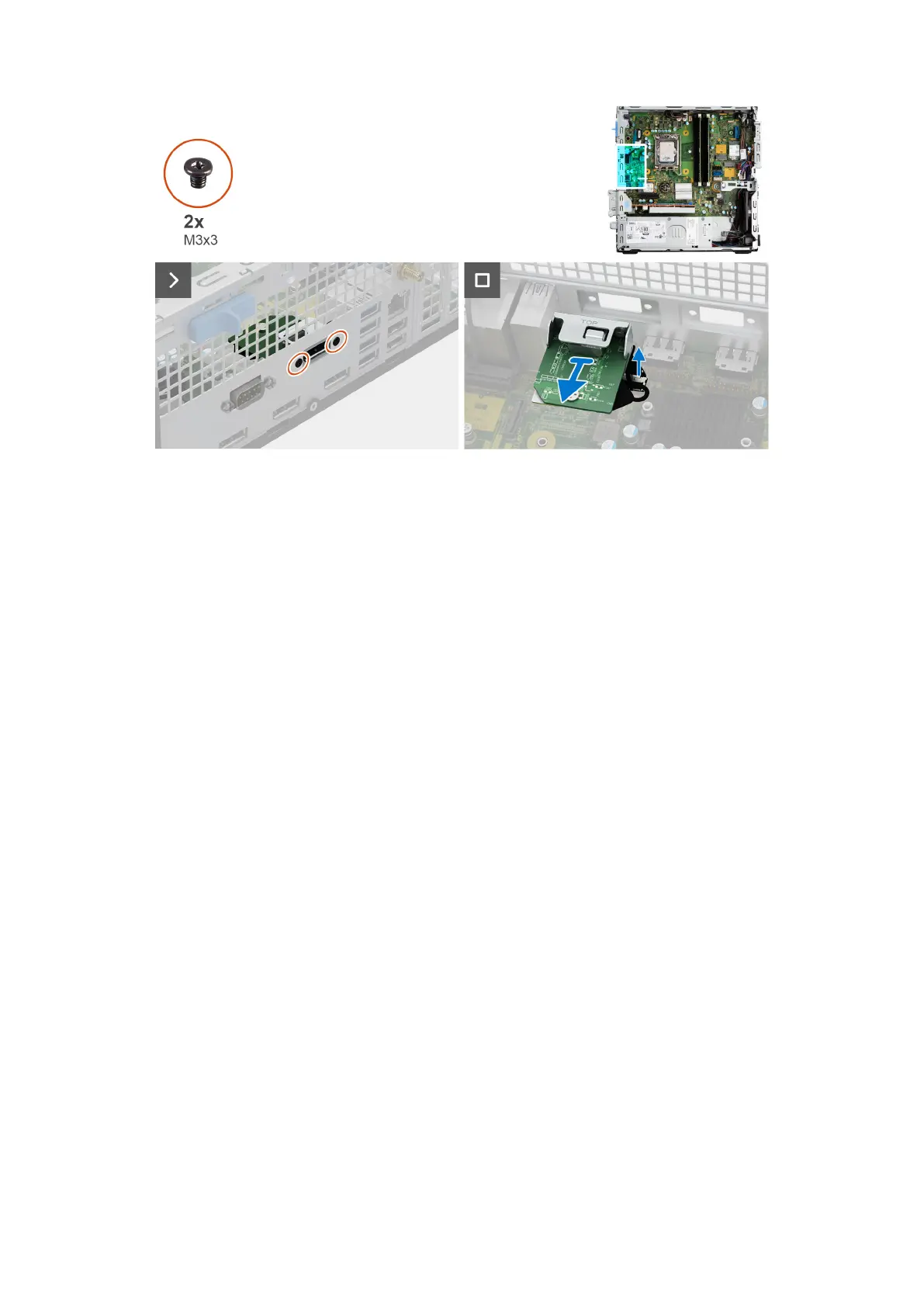 1. Rimuovere le due viti (M3x3) che fissano il modulo DP allo chassis.