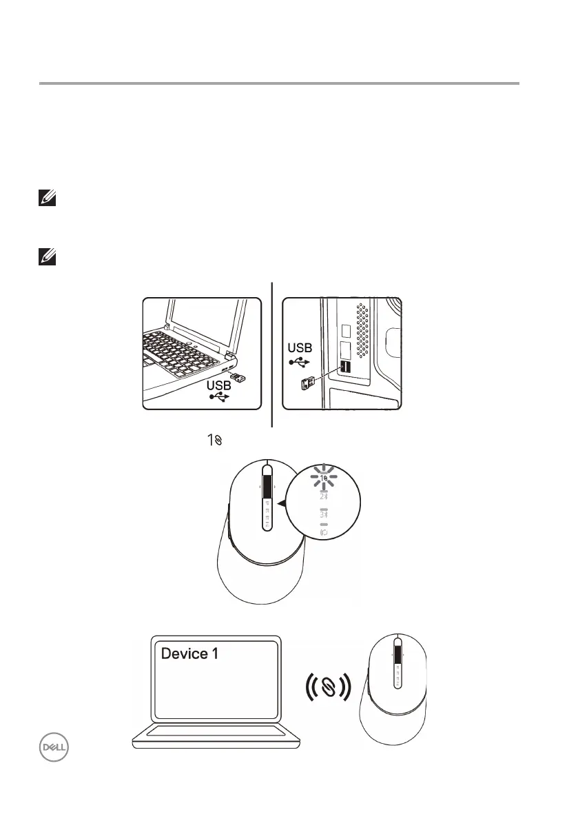 Your Dell wireless mouse can be paired with devices using USB and Bluetooth.