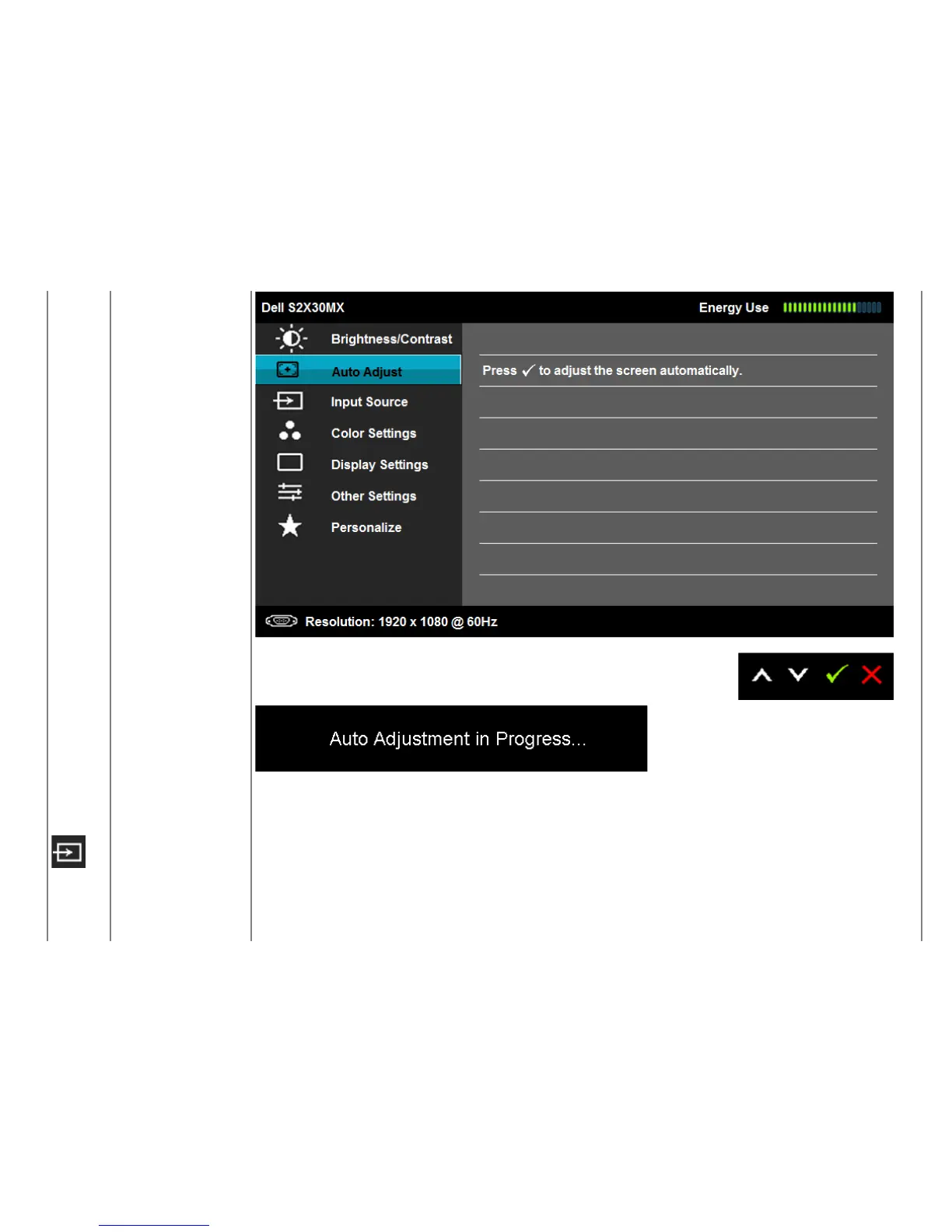 NOTE: Auto Adjust does not occur if you press the button while there are no active video input signals or attached cables.