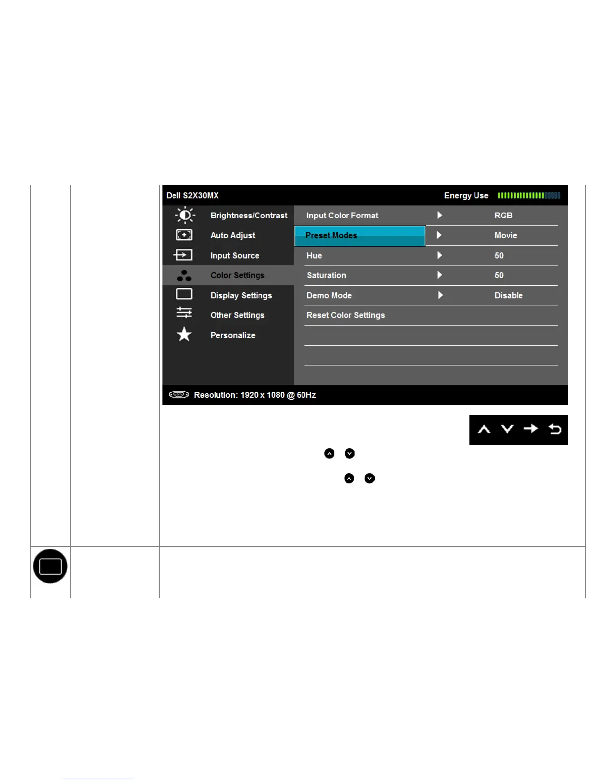 Reset Color Settings Resets your monitor's color settings to the factory defaults.