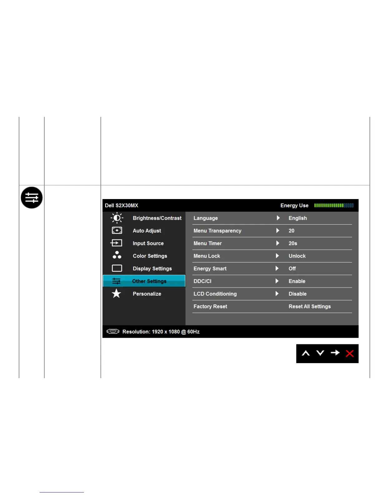 Language Allows you to set the OSD display to one of six languages: English, Spanish, French, German, Simplified Chinese, or Japanese.