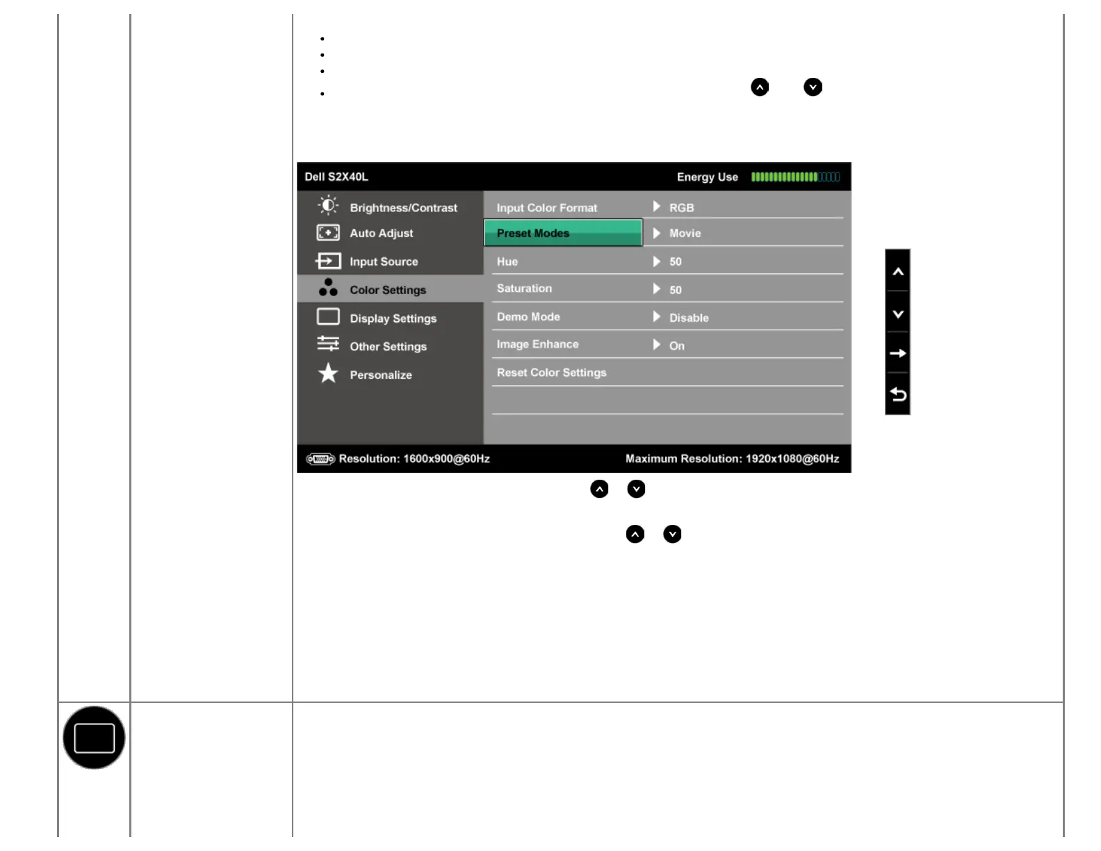 Use the Displays Settings menu to adjust the monitor's display settings.