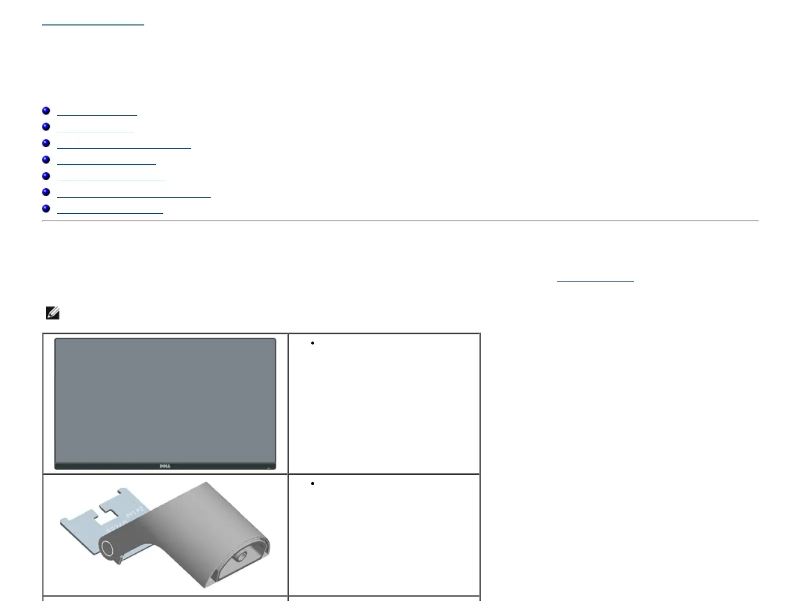 Your monitor ships with all the components shown below. Ensure that you have received all the components and Contacting Dell if anything is missing.