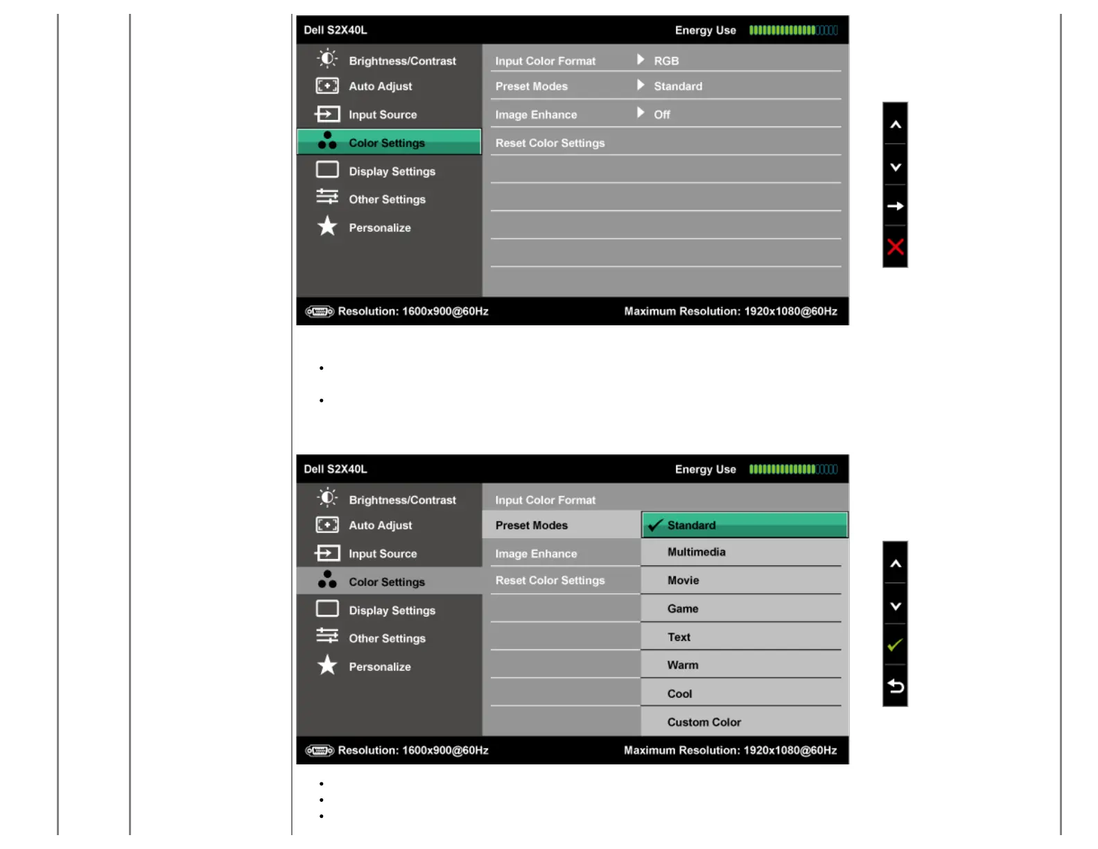 Preset Modes Allows you to choose from a list of preset color modes.