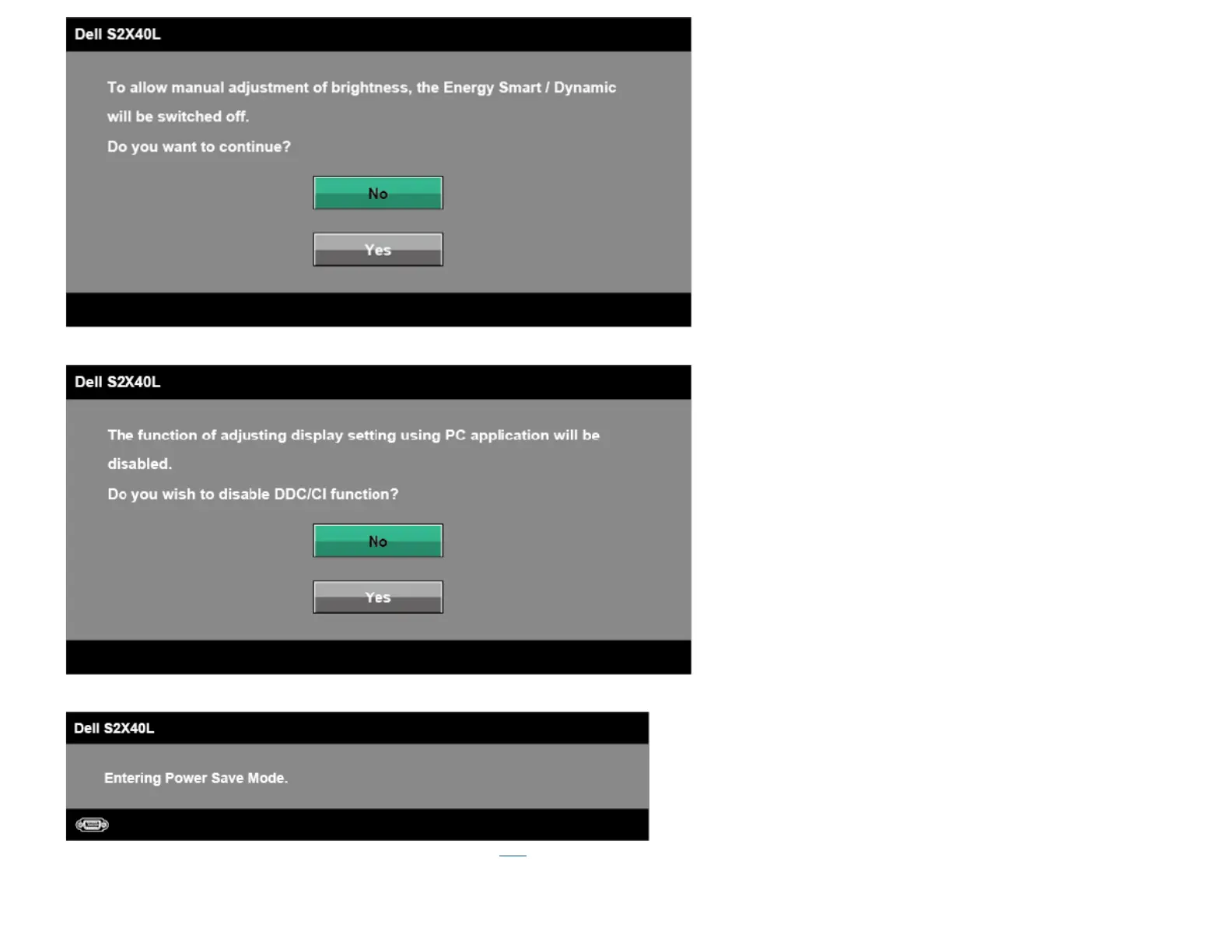 You will see the following message before the DDC/CI function is disabled.