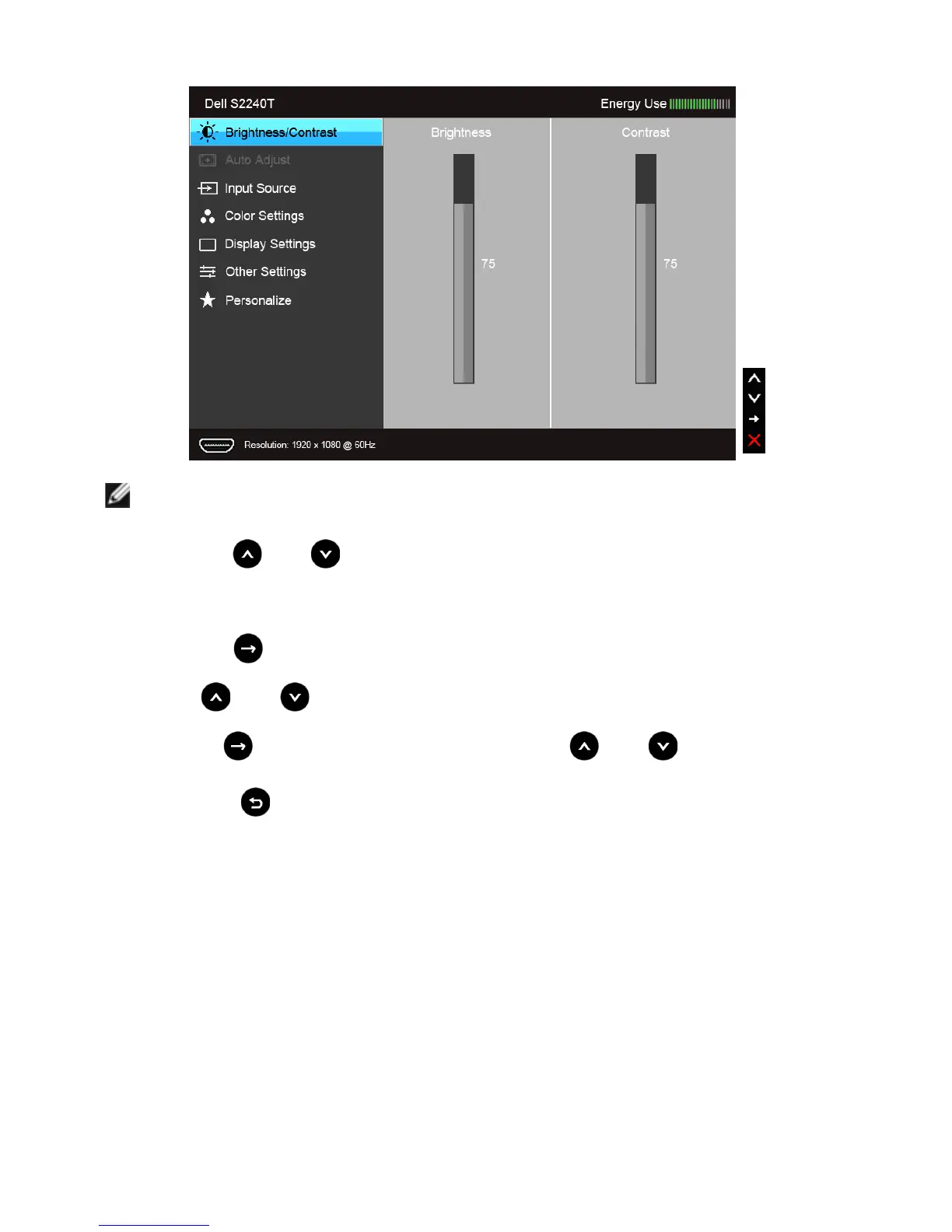5. Press to enter the slide bar and then use the and buttons, according