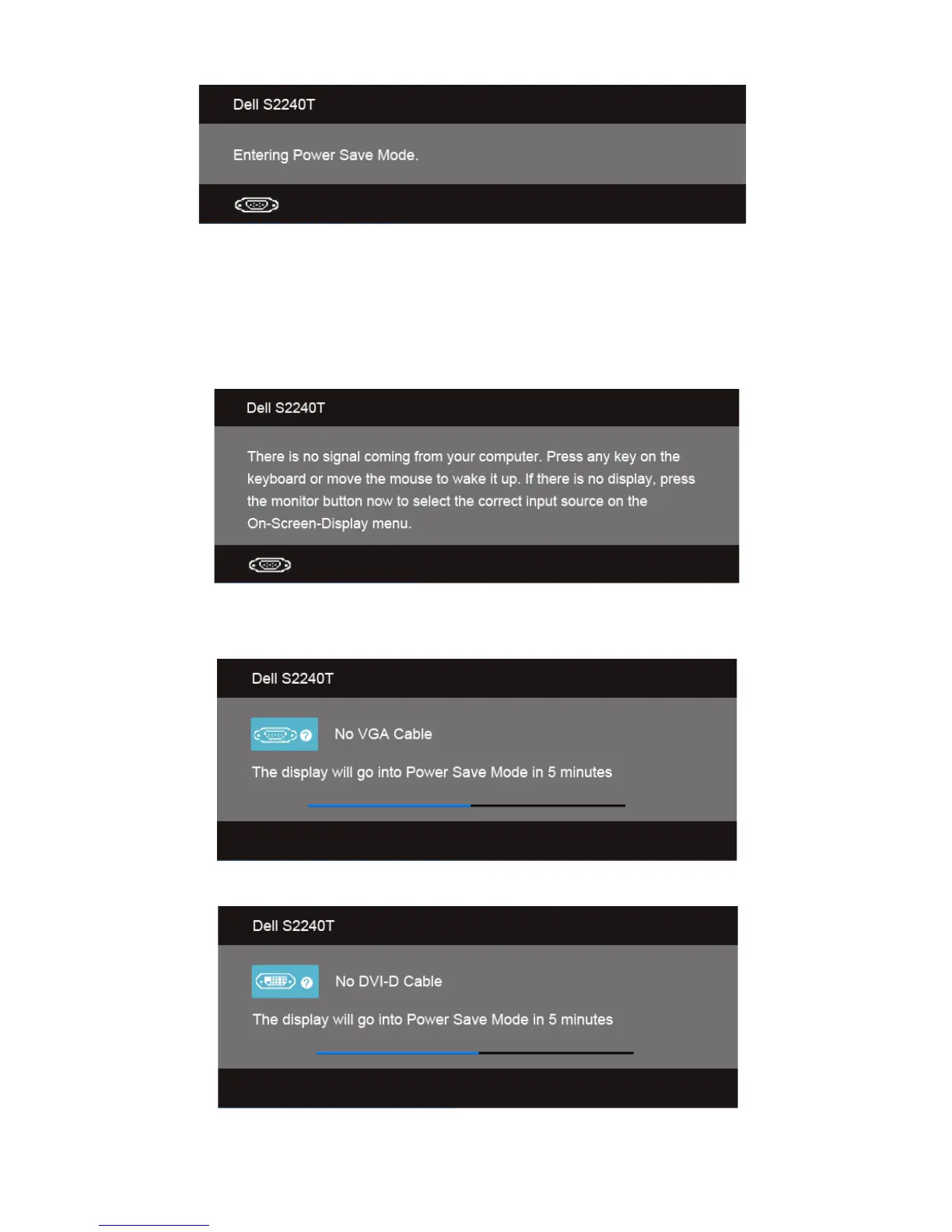 If either VGA, DVI-D, or HDMI input is selected and the corresponding cable is not