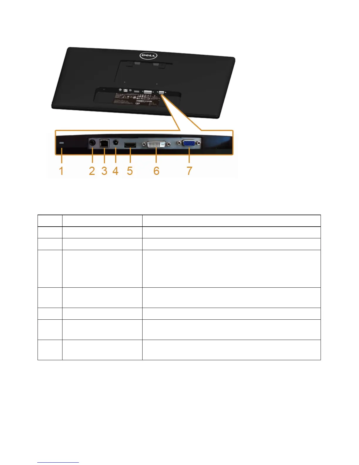 6 DVI connector Connect your computer DVI cable (optional
