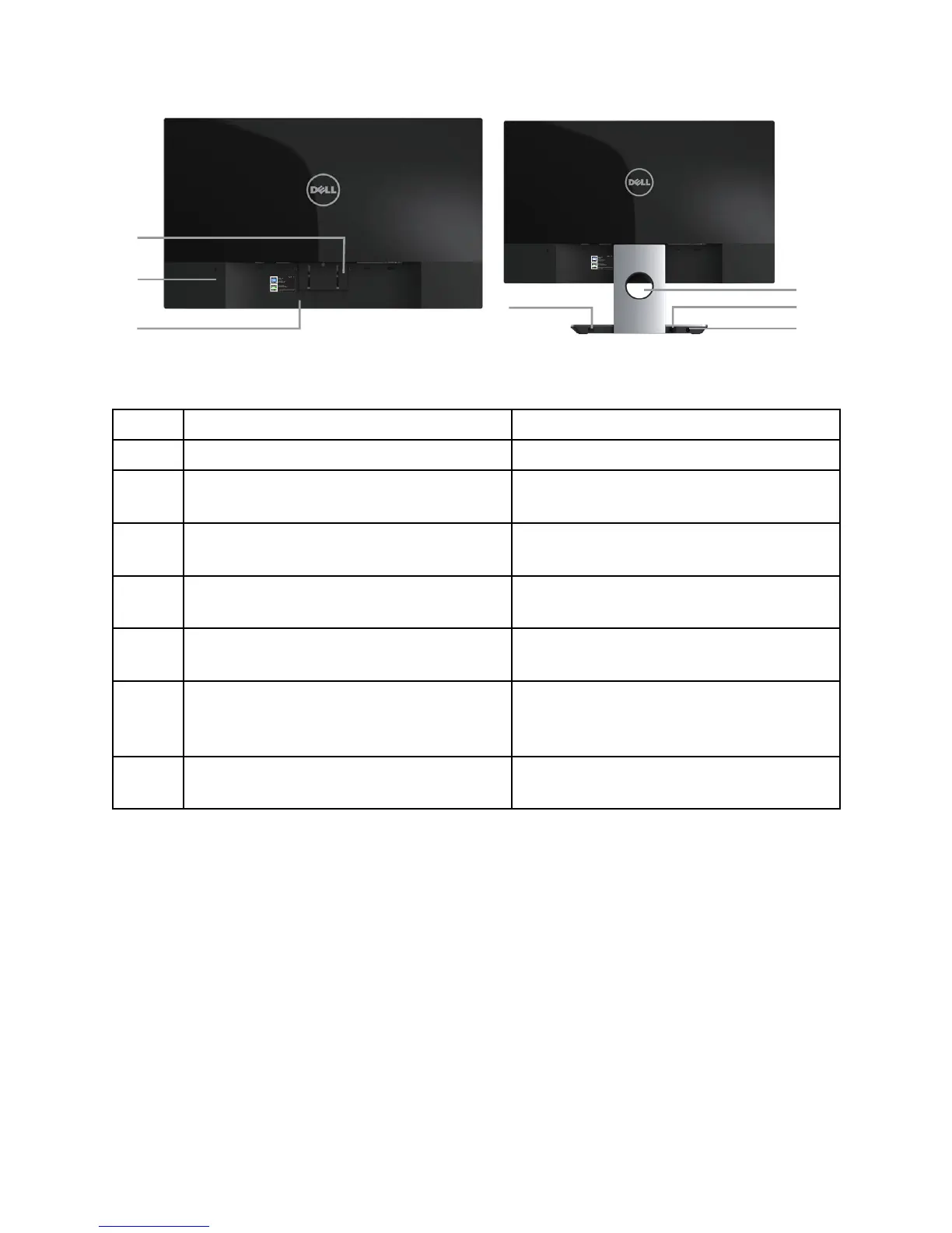 1 Stand release button Releases stand from monitor.