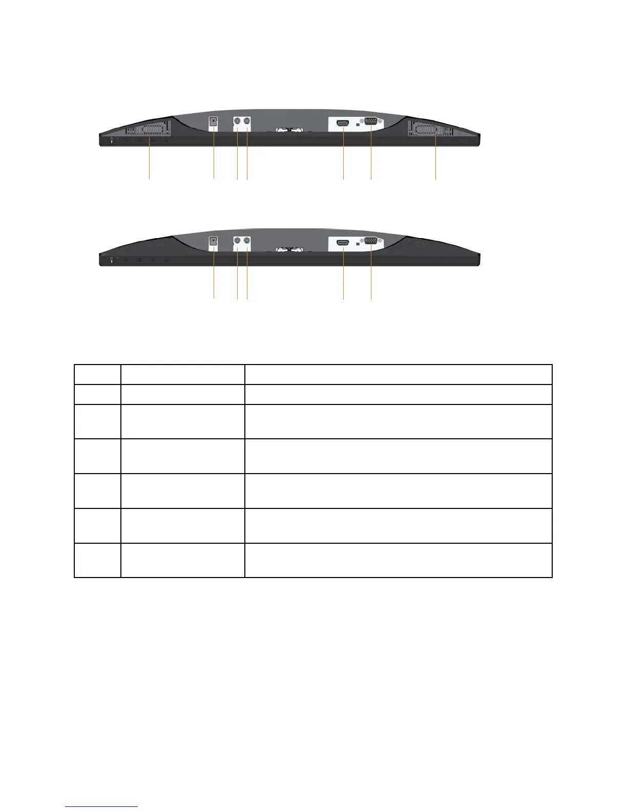 6 VGA port To connect your computer to the monitor using a