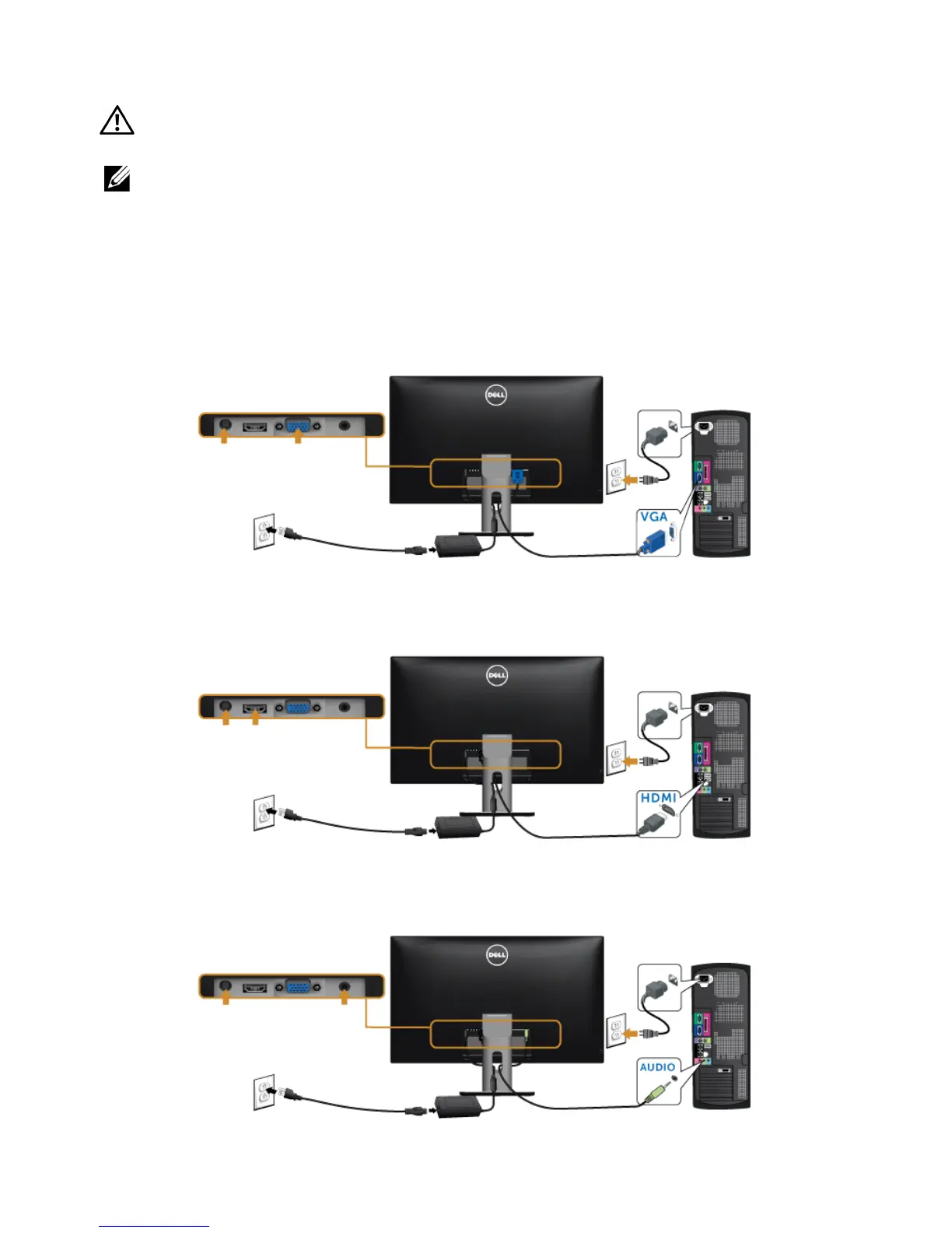 2 Connect the VGA/HDMI/audio cable from your monitor to the computer.
