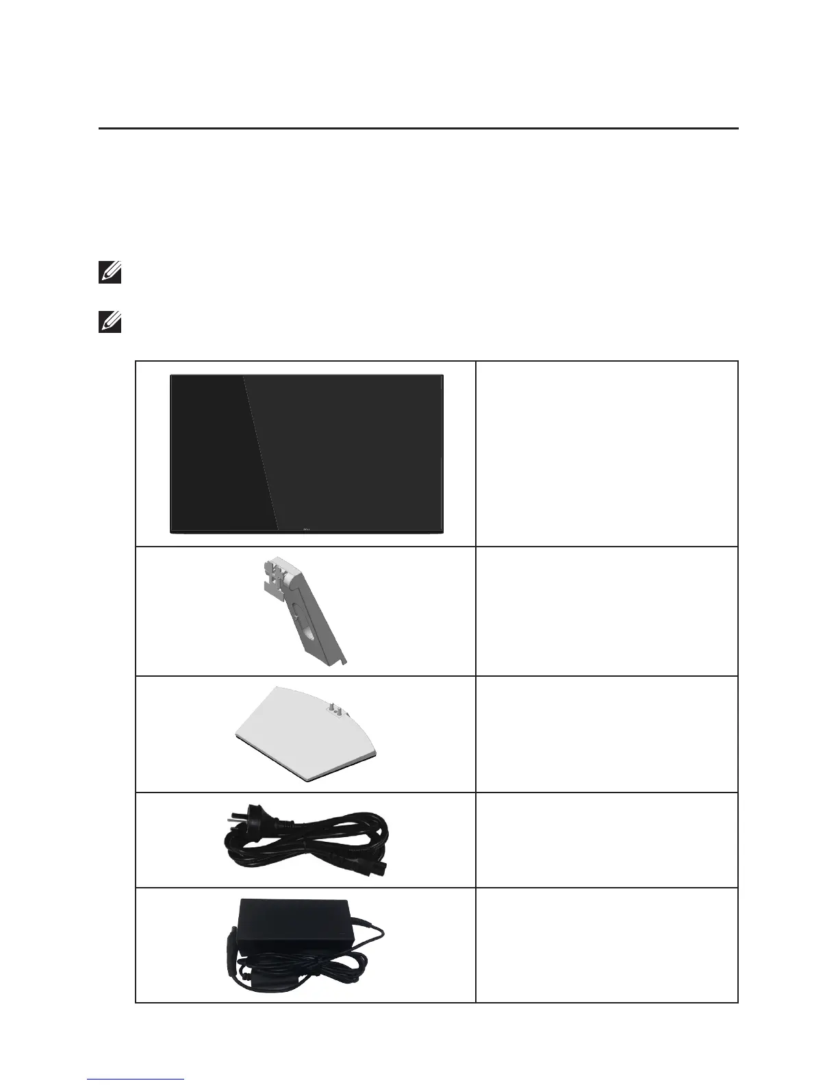 Your monitor ships with the components shown below. Ensure that you have
