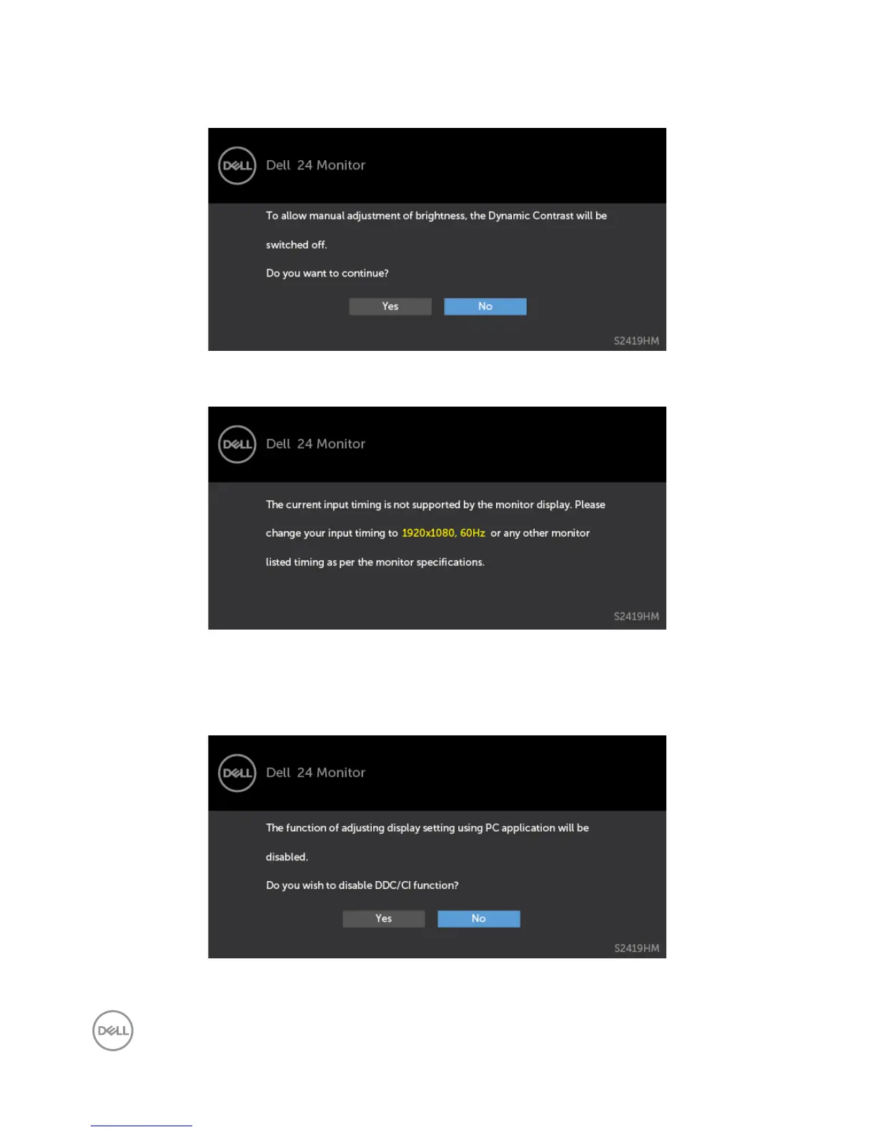 You can see the following message before the DDC/CI function is disabled: