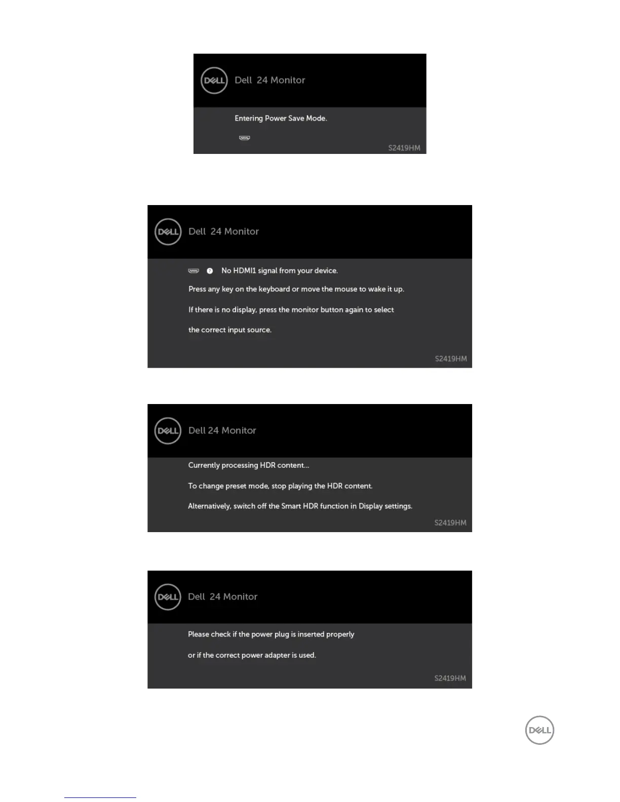 If you press any button other than the power button, the following messages will appear
