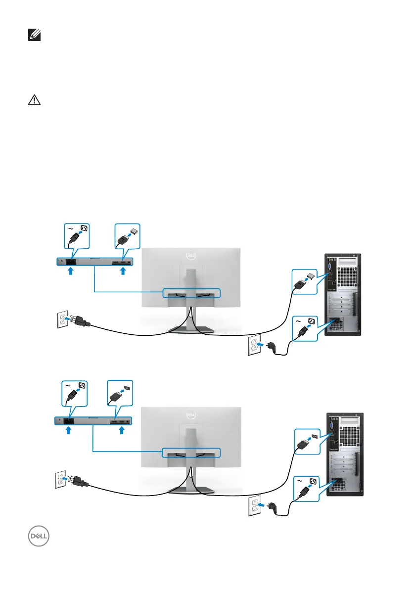 2. Connect the DisplayPort or HDMI cable from your monitor to thecomputer.