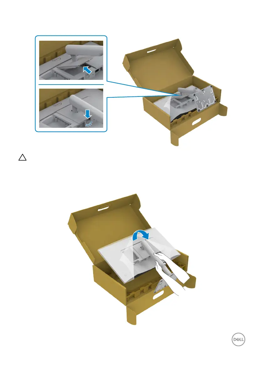 7. Hold the stand riser rmly with both hands and lift the monitor carefully, then