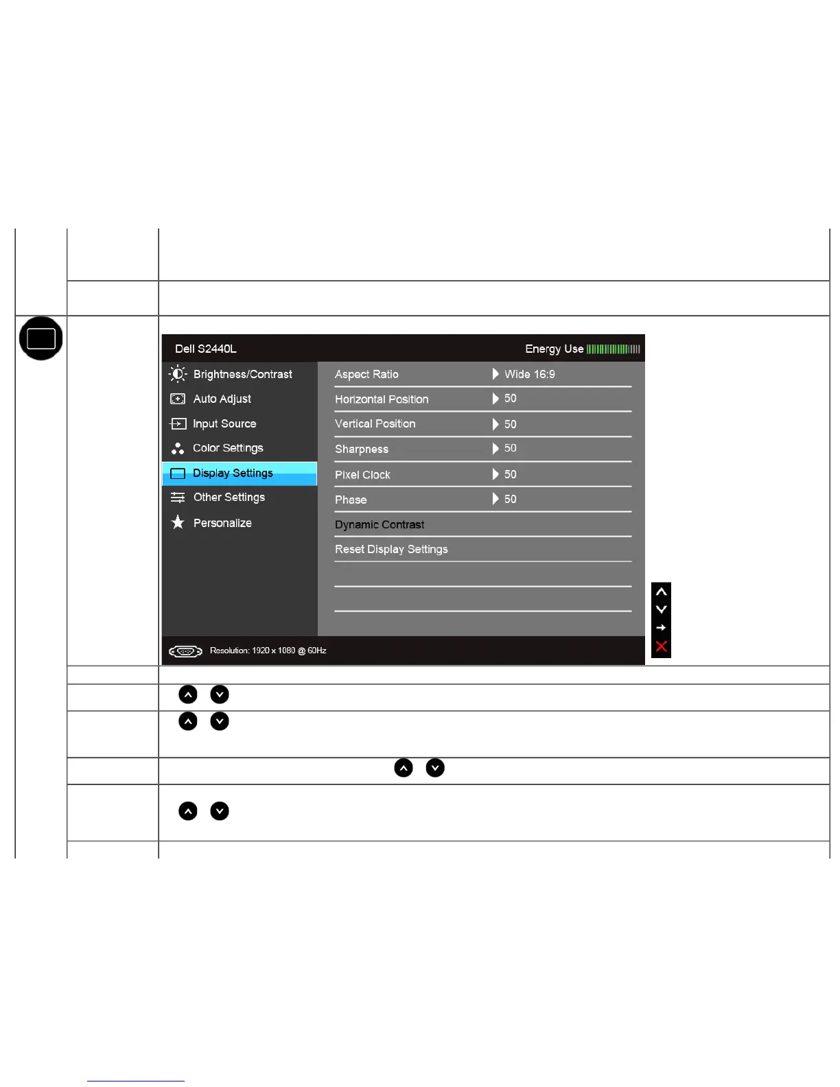 Display Settings Use the Display Settings to adjust image.