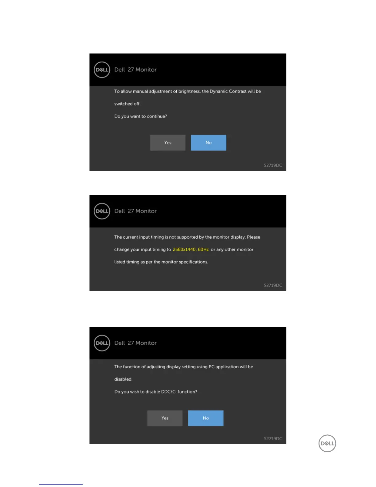 You can see the following message before the DDC/CI function is disabled.