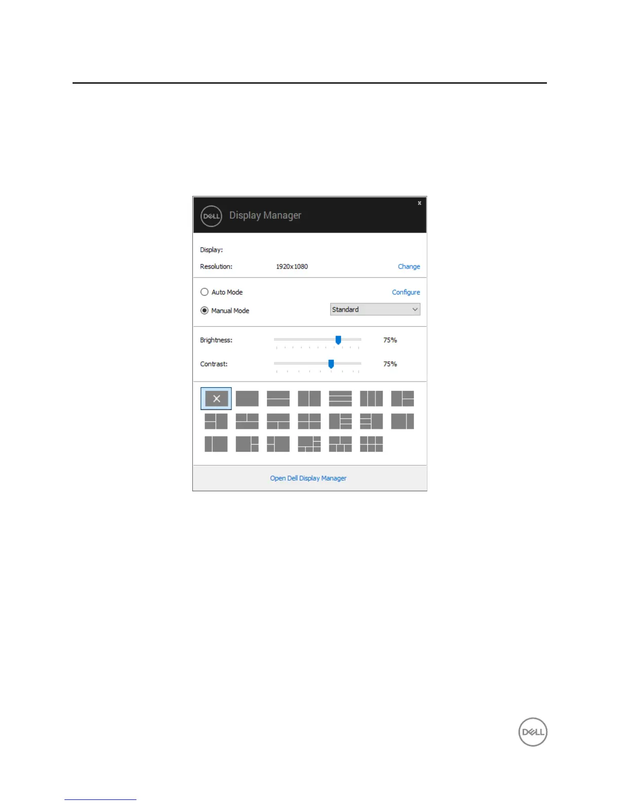 The Quick Settings dialog box also provides access to Dell Display Manager’s