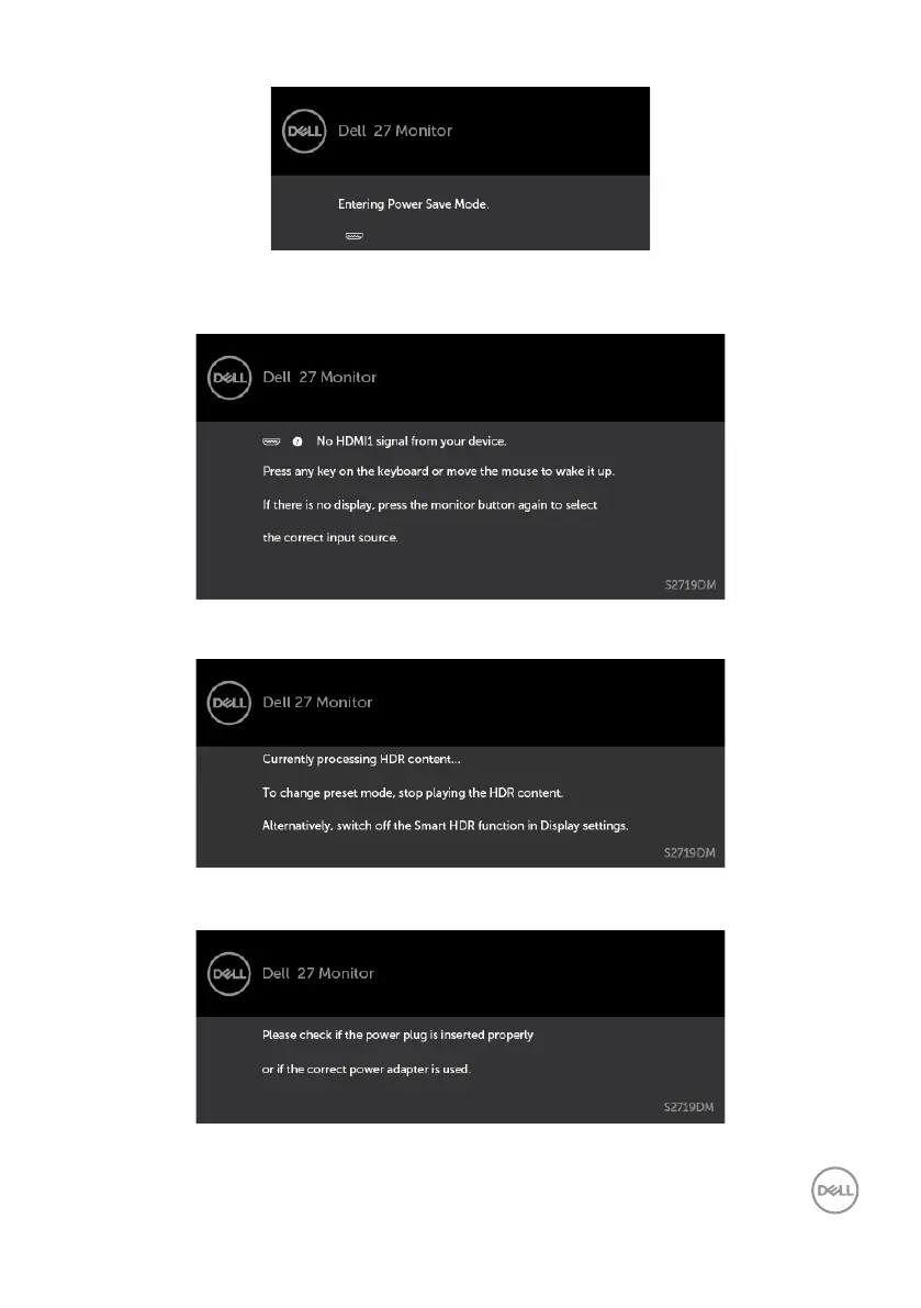 When the monitor enters the Power Save mode, the following message appears: