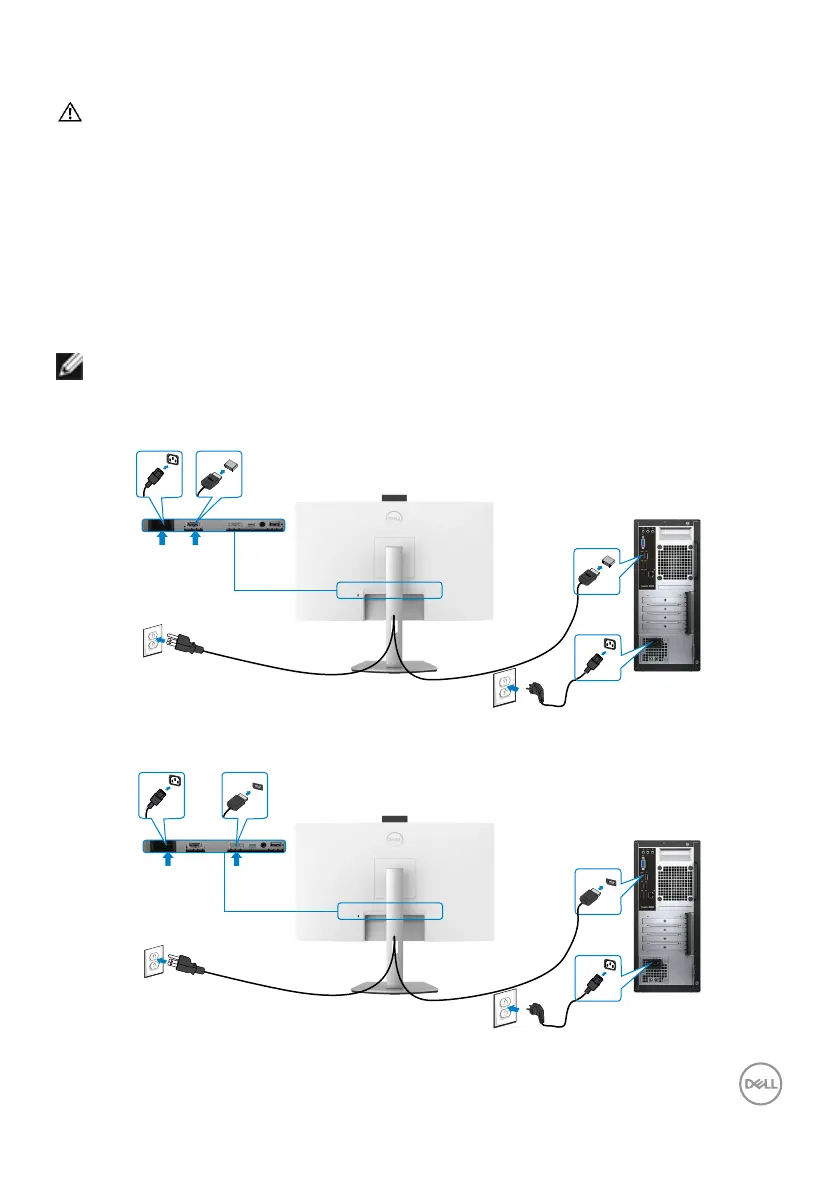 2. Connect the HDMI, or DisplayPort, and the USB-C cable from your monitor to