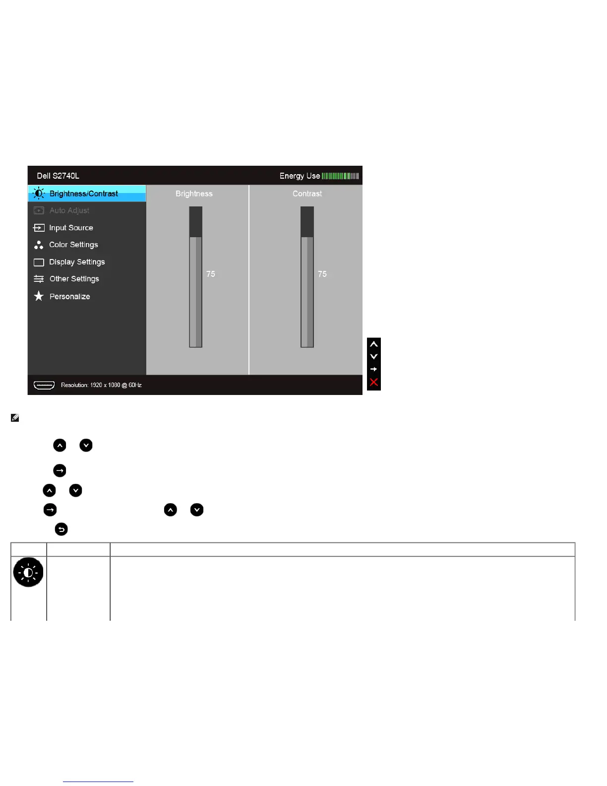 to enter the slide bar and then use the and buttons, according to the indicators on the menu, to make your changes.