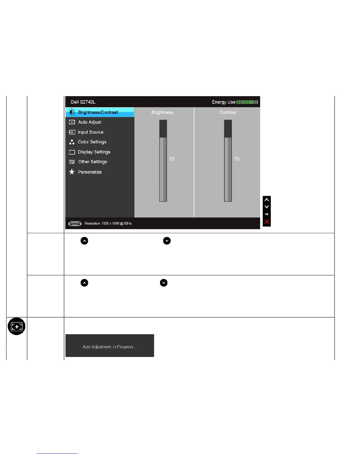 NOTE: Manual adjustment of Brightness is disabled when Energy Smart or Dynamic Contrast is switched On.