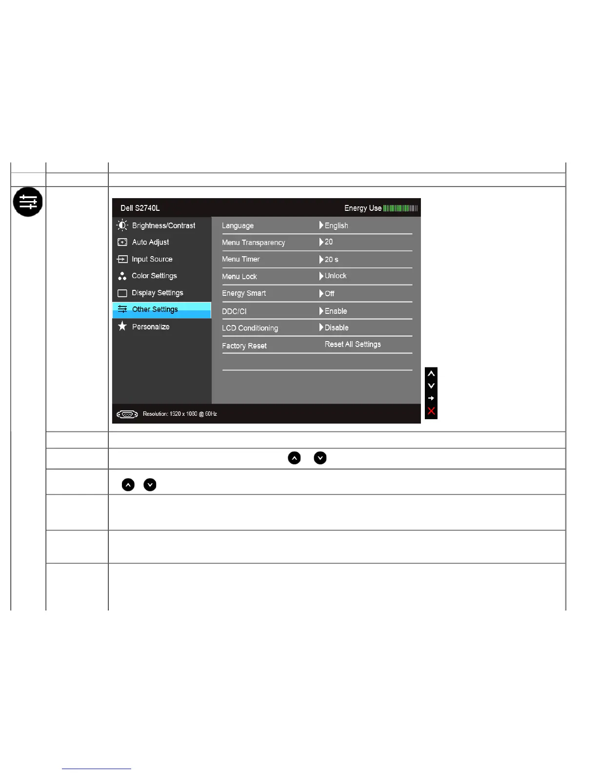 Other Settings Select this option to adjust the settings of the OSD, such as, the languages of the OSD, the amount of time the menu remains on screen, and so on.