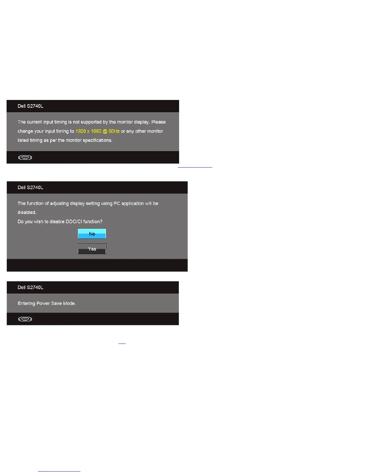 If you press any button other than the power button, one of the following messages will appear depending on the selected input: