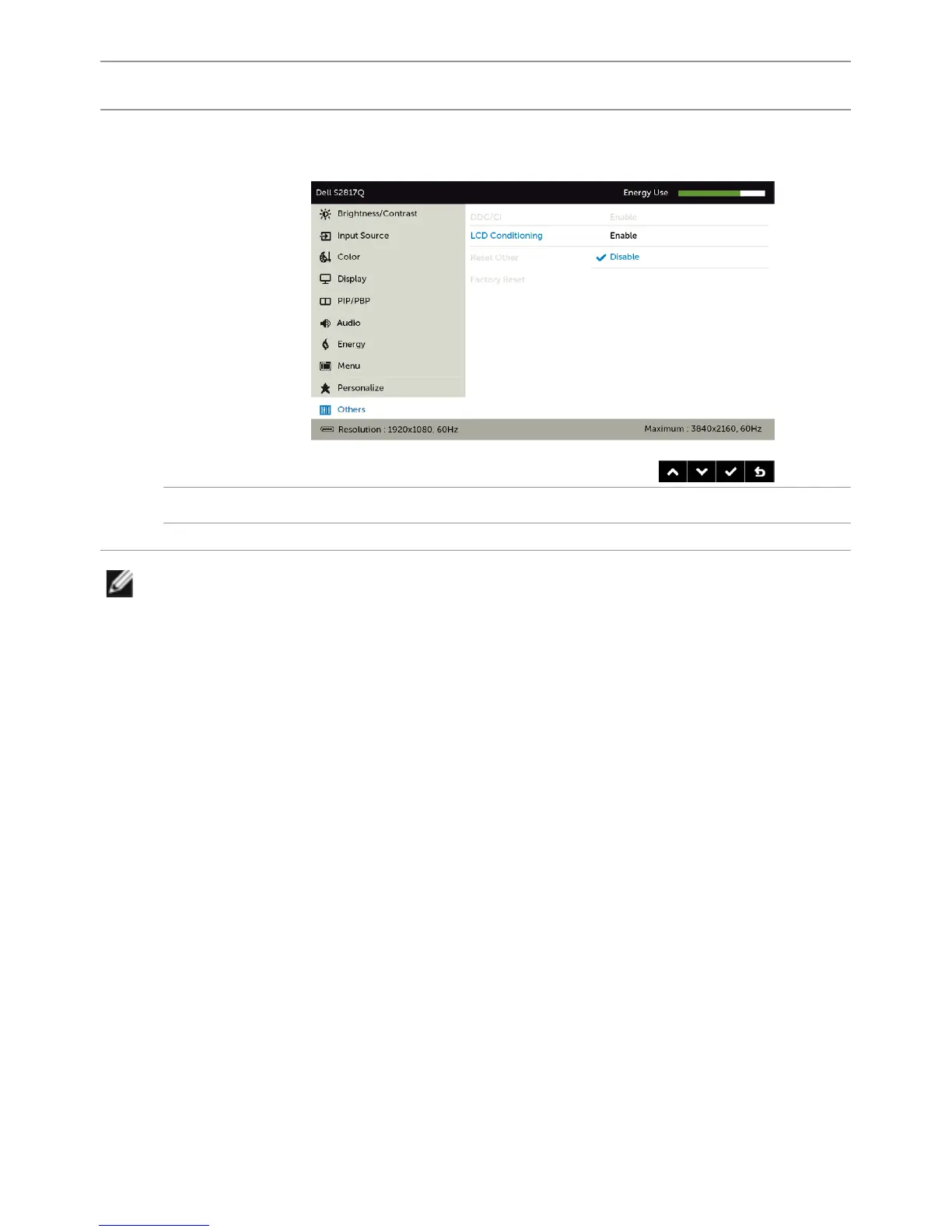 Reset Others Restores other settings, such as DDC/CI, to factorydefaults.