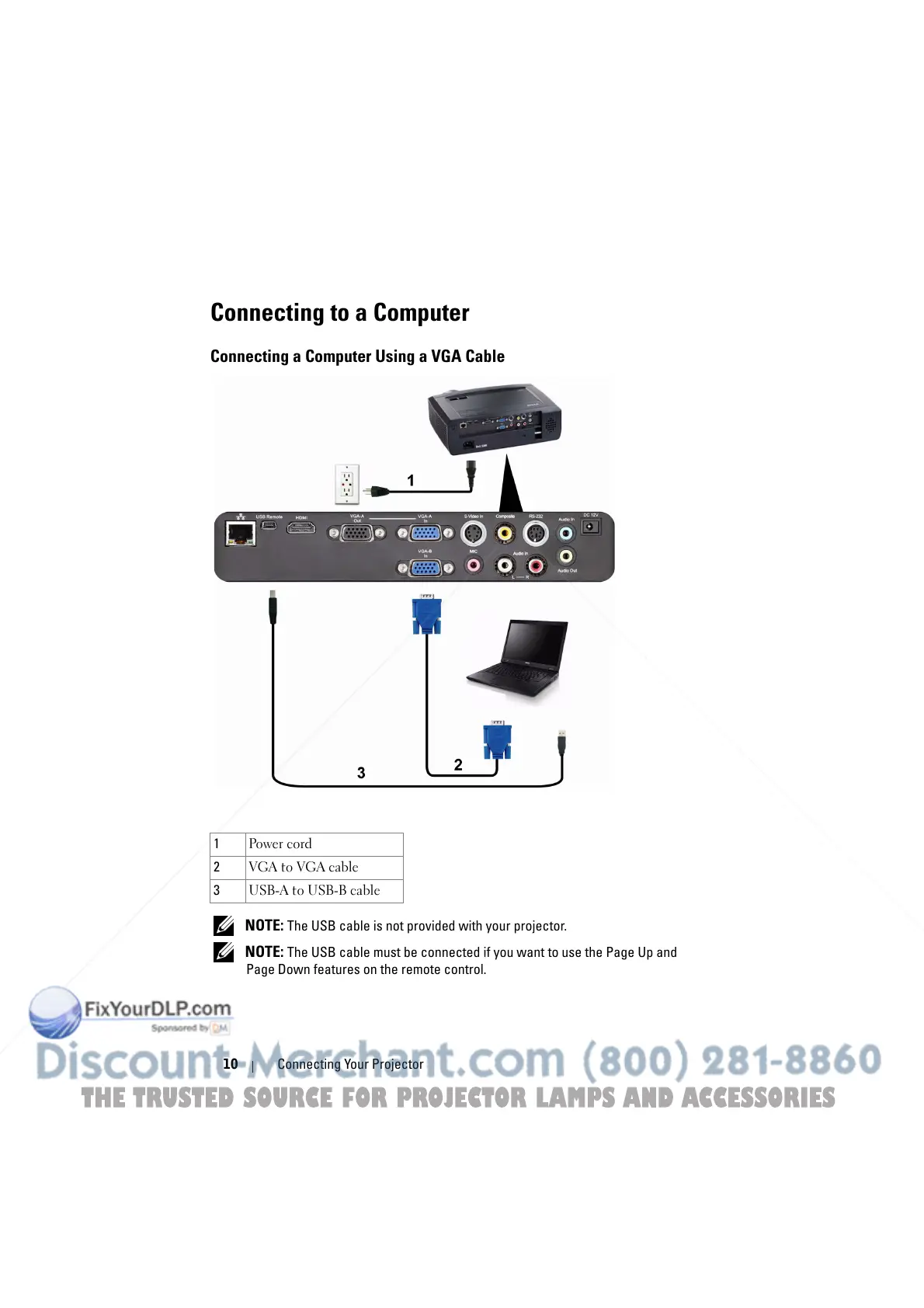 Dell S300 - Connecting to a Computer; Connecting a Computer Using a VGA Cable
