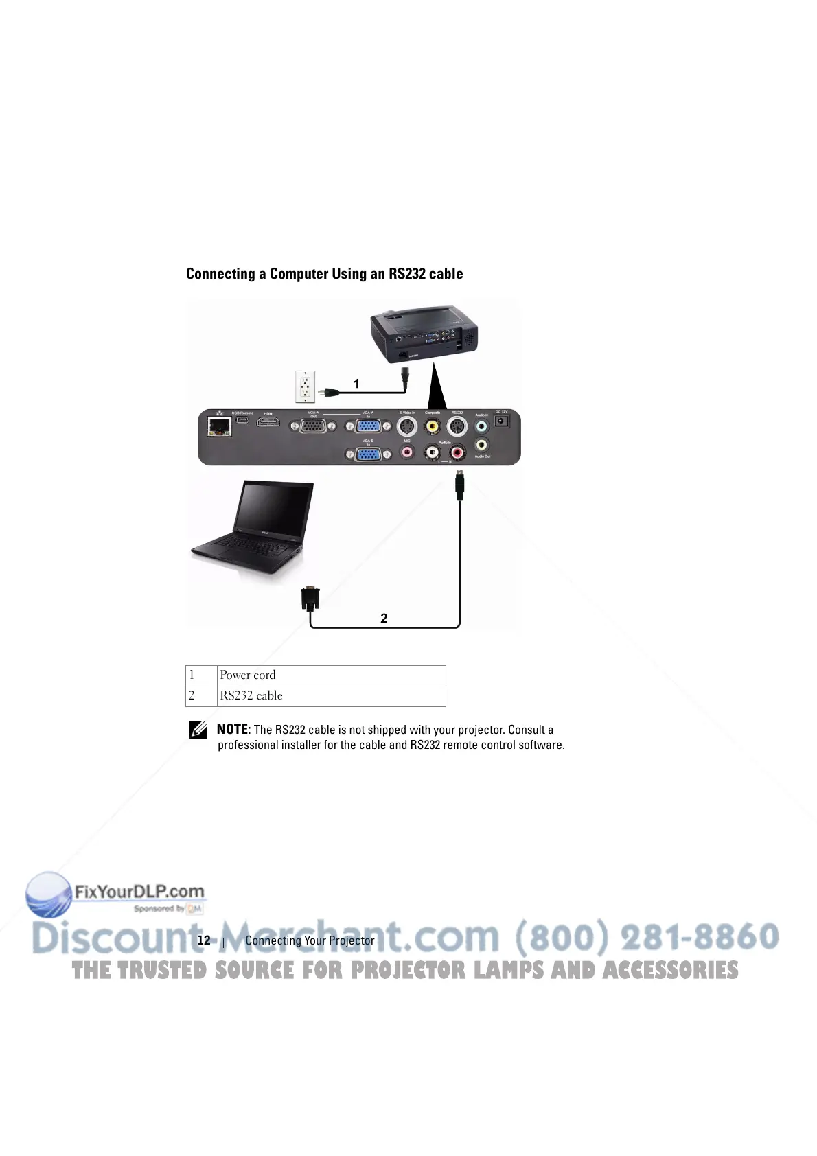 NOTE: The RS232 cable is not shipped with your projector. Consult a