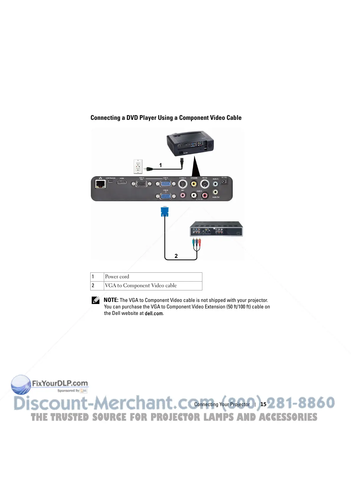 NOTE: The VGA to Component Video cable is not shipped with your projector.