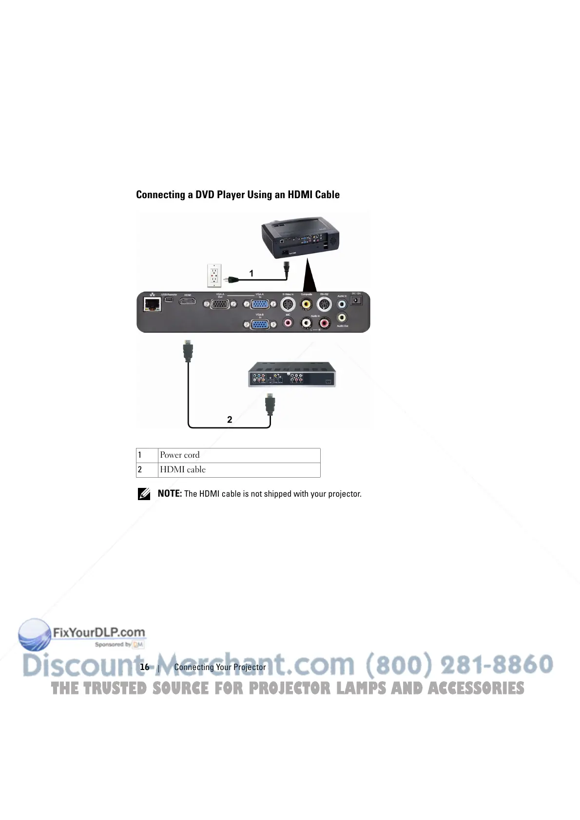 NOTE: The HDMI cable is not shipped with your projector.