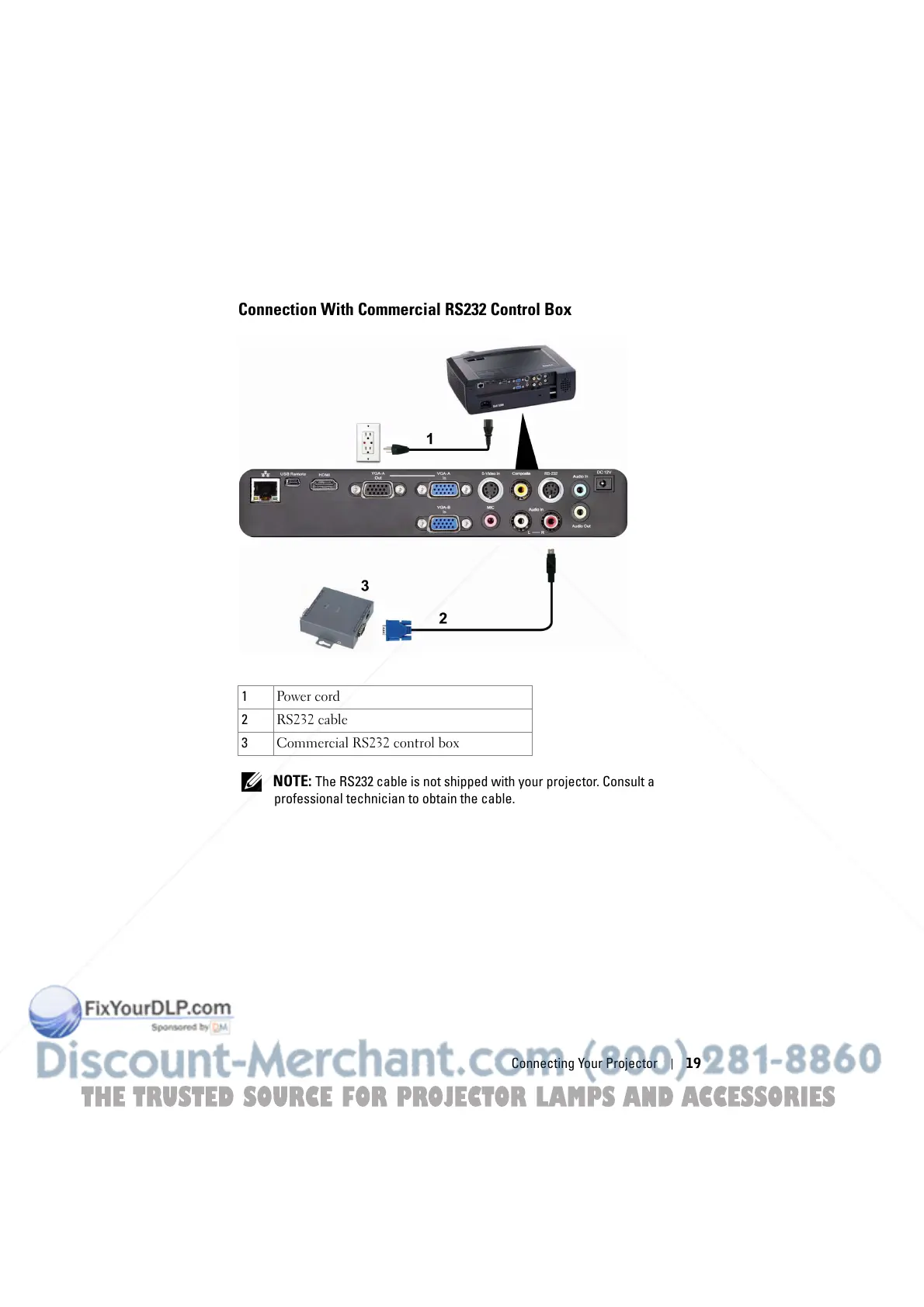 NOTE: The RS232 cable is not shipped with your projector. Consult a