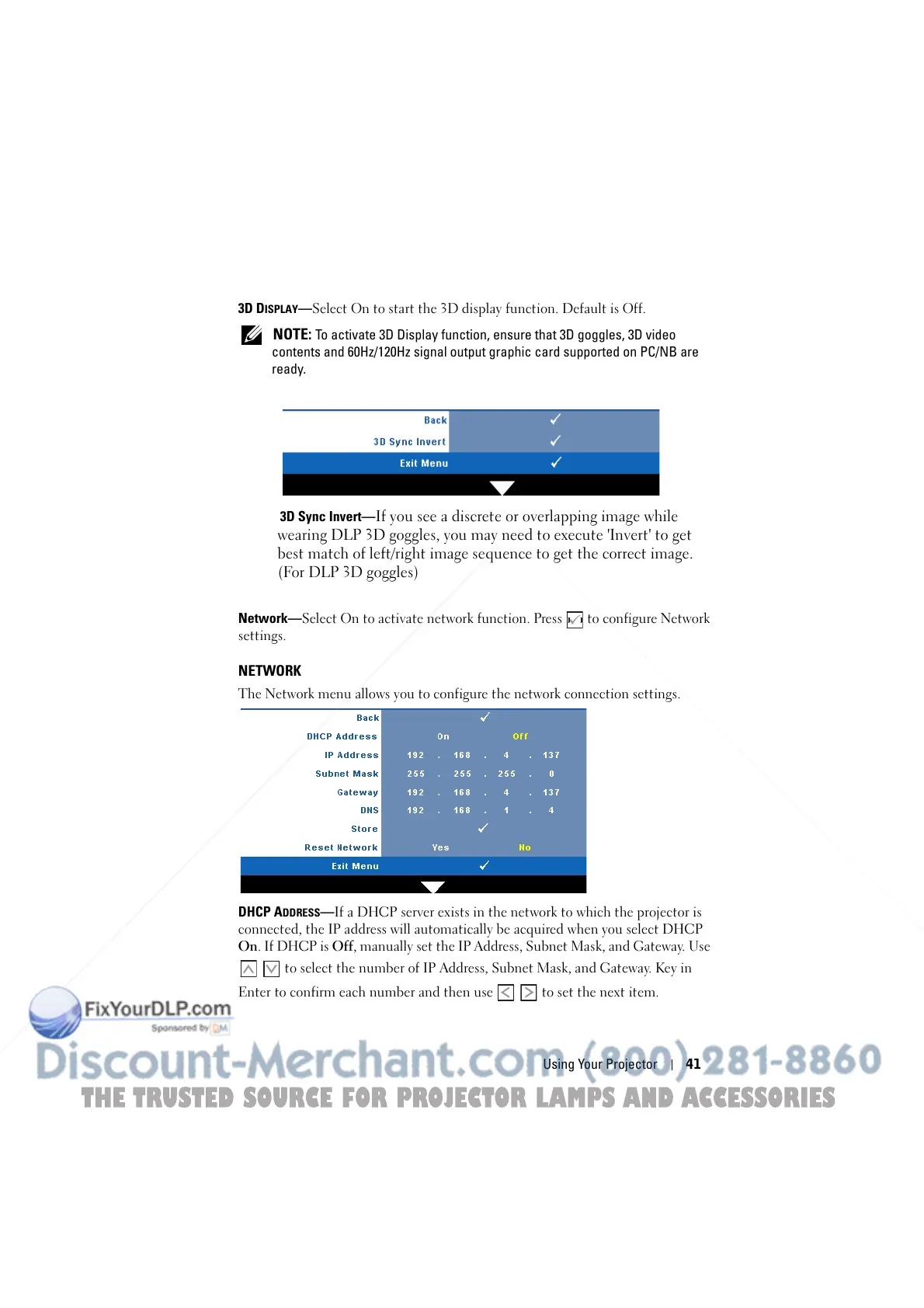 DDRESS—If a DHCP server exists in the network to which the projector is