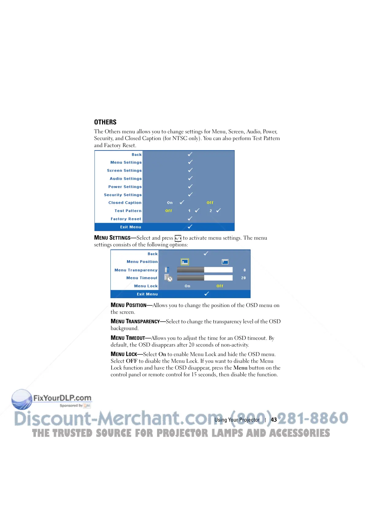 The Others menu allows you to change settings for Menu, Screen, Audio, Power,