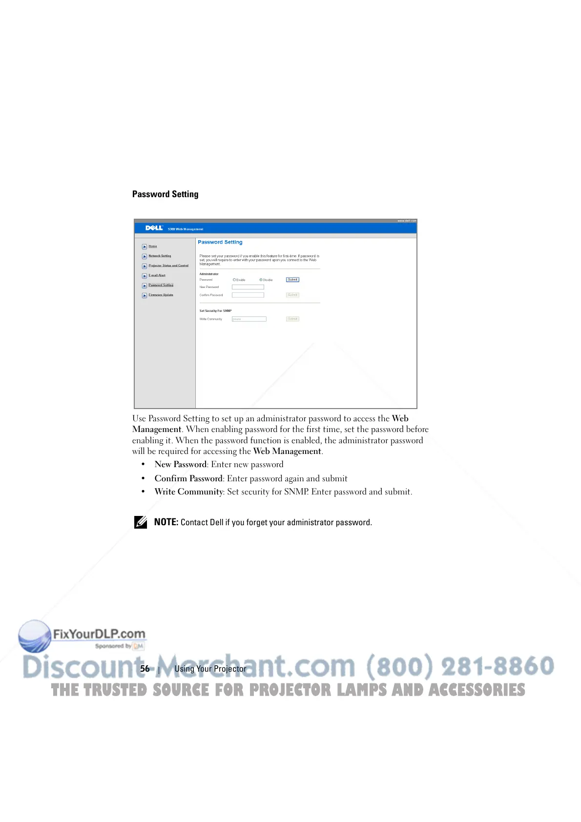 Use Password Setting to set up an administrator password to access the Web